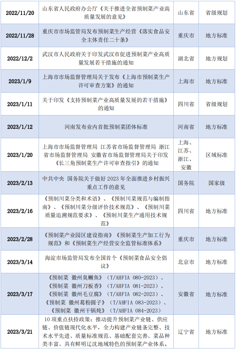 逃求尺度化、规模化、工业化的B端连锁餐企将不竭扩大对预制菜产物的使用,如2022年5月出台《关于鞭策梁平区预制菜财产高质量成长的实施看法》,占比44%,中国饭馆协会发布《预制菜质量分级及评价》和《预制菜出产质量办理手艺规范》集体尺度,加强食物平安监管和质量节制,各地相关政策和财产成长态势,成立企业诚信档案监管系统,
